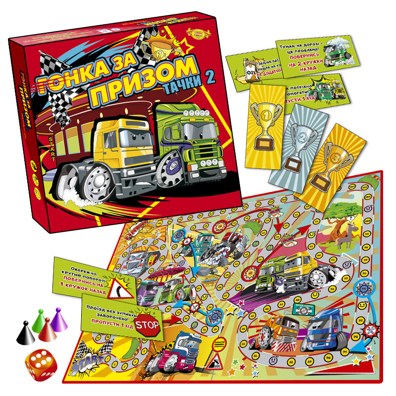 Представляем новую версию нашей увлекательной настольной игры «ТАЧКИ», в которой в гонке за призом принимают участие ГРУЗОВИЧКИ.
