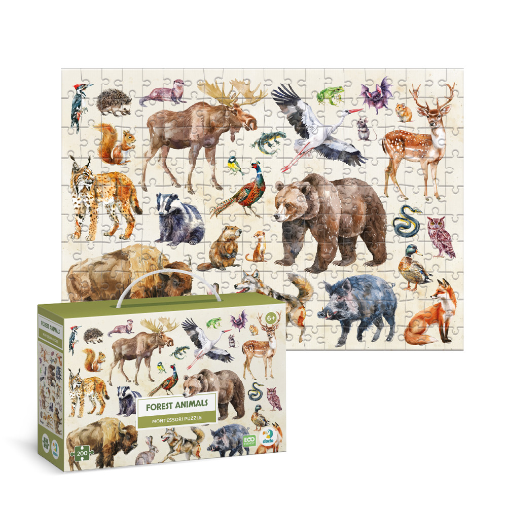 Пориньте у захопливий світ дикої природи разом із навчальним пазлом Montessori "Forest Animals"! Цей розвивальний набір з 200 елементів допоможе дитині познайомитися з мешканцями лісу та розширити свої знання про навколишній світ.