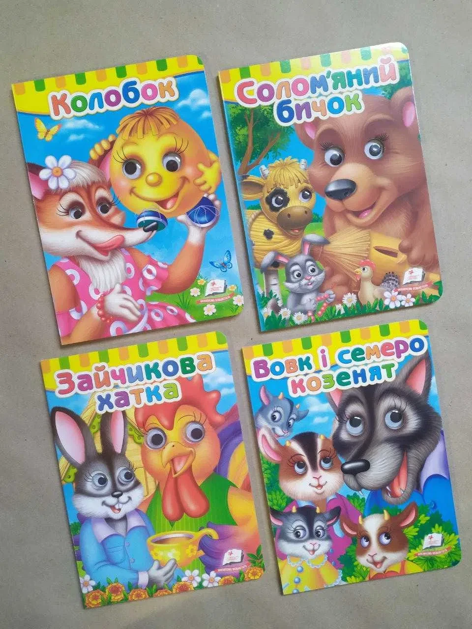 Малышам книги с глазками. Комплект сказок: Колобок, Зайчиковый домик, Волк и семеро козлят, Соломенный бычок